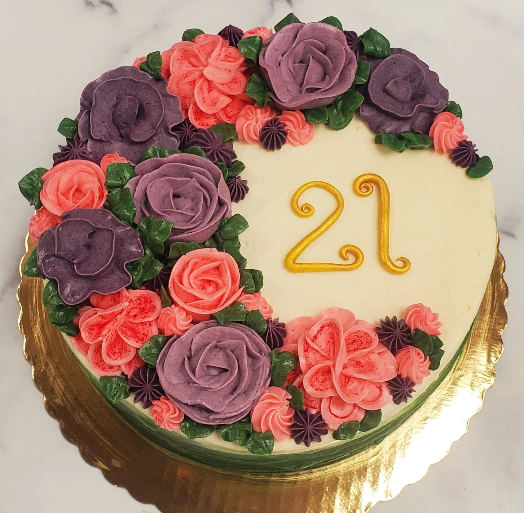 Buttercream floral cakes - Today, students will learn how to make a variety of buttercream flowers including roses, hydrangeas, pansies and sunflowers! We’ll go over how to prepare a pastry bag for piping and how to properly hold the bag. We’ll discuss different ways to color buttercream to achieve varied effects with flowers. We’ll also discuss different types of buttercream borders so students can finish their cakes like pros!